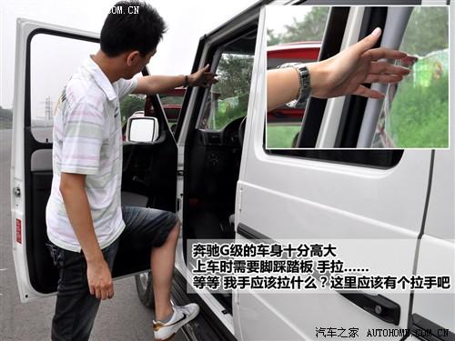 打開車門后我們發現,奔馳G級由于離地間隙比一般的SUV還要高出不少,因此上車的動作難度也隨之加大了。不過幸好設計了車身側踏板,但如果能在A柱上安裝一個拉手,就能讓駕駛者感到更順心一些。