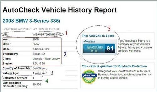 AutoCheck report與美國部份州的監理所(DMV)有合作關系,因此如果您上美國監理所(DMV)的網站,監理所都會建議您在買車的時候,一定要檢查AutoCheck報告,在AutoCheck報告可能可以提供您買車的重要參考資料-如經歷多少任車主,里程數為何,何時何地掛牌,是否有出過交通事故,車籍資料是否干凈(如Lemon car, Salvage or Junk title),等等歷史資料。另一份也一定要了解的是CarFax。