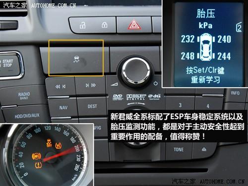 君威那衍生于歐寶Insignia的動(dòng)感外形是吸引消費(fèi)者的首要因素,而君威金玉其外的背后可不是敗絮其中。ESP車身穩(wěn)定系統(tǒng)和可以顯示具體數(shù)值的胎壓監(jiān)測(cè)都是十分實(shí)用的配置,而它們?cè)谌稻隙际菢?biāo)配,這點(diǎn)比較難得。