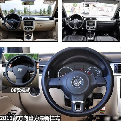 相比老款帶有木紋裝飾的內飾,2011款寶來有黑色內飾和上深下淺兩種內飾可供選擇,中控有兩處最大的改變,一個是將老款車型上被人詬病的老氣的木紋裝飾改為了更加時尚的金屬貼片。另一個則是方向盤換為了和高爾(報價圖片參數)夫(報價圖片參數)6相同的家族最新樣式。