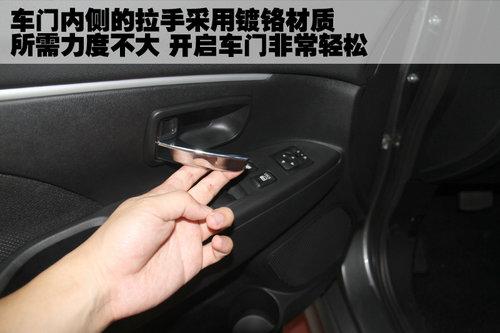 三菱ASX勁炫采用無鑰匙系統,車門上的門把手采用與車身同色設計,開啟并不需太大的力氣,非常輕便。另外,這款車的門把手上的無鑰匙開啟按鍵采用軟性材料,手感也比較舒服。