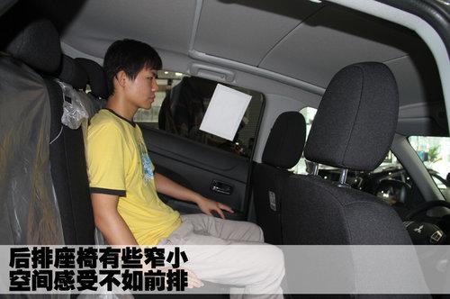 三菱ASX勁炫后排座椅靠背與坐墊的角度適中,不同身材體型的乘員在乘坐時(shí)能夠找到舒適的姿勢(shì)。但這款車的后排稍顯緊湊,頭部空間和腿部空間相對(duì)比較狹小。圖中的模特身高180厘米左右,頭部幾乎已經(jīng)要頂?shù)杰図敗?/p>