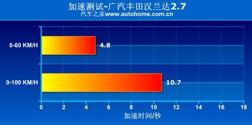 對于這款超過1.8噸的車輛來說,漢蘭達排量為2.7升的發動機表現基本滿足正常需要,只要舍得踩下油門,變可發揮出0-100Km/h的加速時間為10.7秒的成績,41.7米的剎車成績對于SUV車型來說還是不錯的。漢蘭達搭載的是一臺6速手自一體自動變速箱,日常駕駛中的換擋平順性也令人滿意。
