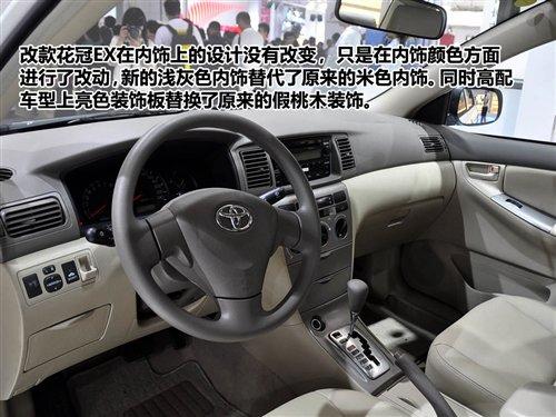 2010款花冠的改動僅僅停留在外表,內飾造型與之前車型沒有變化,高配車型用金屬代替了仿桃木飾條,看起來不再那么老氣。2600mm的軸距處于目前緊湊型家用車的偏低水平,但通過合理的空間優化,前后排的乘坐空間表現都比較合理,作為家用車來說完全沒有問題。總的來說,各方面都表現比較中庸的花冠2010款車型的性價比也不錯。