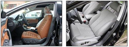 座椅方面同樣體現出了兩款車型不同的設計理念,CC豪華版的棕色波浪式座椅,看起來包裹性出色,側向給予的支持力也還算到位,如果您另對黑色座椅鐘愛尤佳,那么選裝Alcantara材質拼裝的翻毛真皮座椅一定會是個更好的選擇。邁騰淺色的內飾看起來更加厚重,偏向家用風格,坐上去感覺包裹性一般,但真皮座椅質地還算比較不錯。