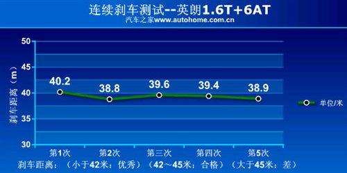 英朗XT 1.6T新銳運動版是車系中最具有特色的車型,相比大家都不陌生,我們對該車進行性能測試,平均制動距離為39.4米,車身姿態保持的也比較完美,大力緊急制動的整個過程中制動力輸出平穩,一臺善于奔跑的車能停住是相當重要的。