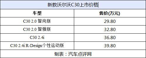 新款沃爾沃C30在車身外型上進(jìn)行了一些細(xì)微調(diào)整,使其更加運(yùn)動,并且車身顏色增加了動感的火焰橙顏色,而動力/傳動系統(tǒng)則繼續(xù)沿用沃爾沃汽車的2.0L和2.4L發(fā)動機(jī)作為動力來源。