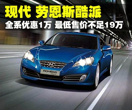 據現代4S 店銷售人員介紹,目前購買勞恩斯酷派全系車型可優惠現金1萬元,另外還贈送價值5000元的車輛裝飾,較前段時間在優惠上有所加大。入門級車型優惠后最低 售價為18.9萬元。現車方面,店內有2.0T豪華版及靚雅版現車供應,現車顏色以藍色、紅色、銀色、灰色為主。3.7L車型需要預訂,訂金為1萬元,需 等待1個月左右時間可以提到現車。如消費者有意購買,到店詳談會有更優惠的價格。北京地區各4S店由于訂單不同,各店銷售的現車顏色有所不同。