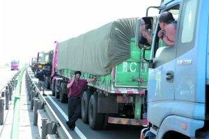 在興和收費(fèi)站和集寧收費(fèi)站,開始限制大型貨車進(jìn)入京藏高速進(jìn)京路段。但是仍有從涼城、呼和浩特等地駛來的貨車不斷延長(zhǎng)堵車隊(duì)伍。