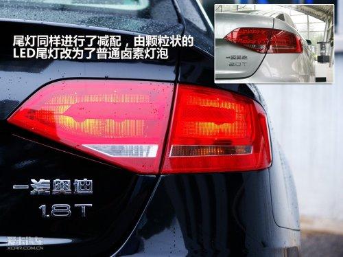 在尾部方面,同樣取消了2.0TFSI車型配備的點狀LED尾燈,換成了普通的鹵素燈泡。對于新A4L的LED尾燈,很多司機在論壇中反映其亮度過高,在夜間跟在其后面很容易“晃眼”。而就個人審美而言,筆者更喜歡鹵素燈泡所發出的淡柔光線,而且LED尾燈因為發光源為LED顆粒,所以并沒有鹵素大燈整體感強烈。