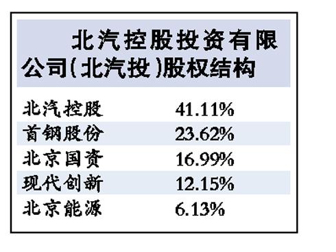 據(jù)昨天首鋼股份的投資公告,擬以其持有的北京汽車投資有限公司(下稱“北汽投”)全部股權(quán)及部分現(xiàn)金投資參與發(fā)起設(shè)立“北京汽車股份有限公司”(暫定名,下稱“北汽股份”),預計持股比例為18.31%。