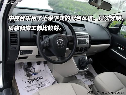 馬自達5內飾比較精致,上深下淺的雙色搭配簡潔偏向于溫馨。三輻方向盤集成了音響系統的控制鍵與馬自達其他車型相同,凸顯馬自達品牌運動的風格,儀表的表現形式中規中矩,雖然很簡潔但是讀書清晰,駕駛馬自達5不會有純商務MPV那樣拿架子,精神上會放松不少。