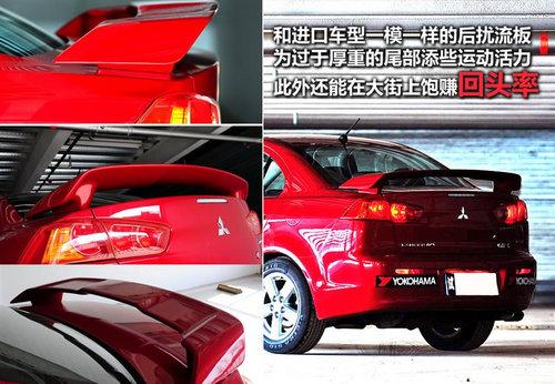 藍瑟·翼神在外型上不缺乏亮點,最為引人注目的是家族式“鯊魚嘴”進氣口,不過在國產后,原來的大嘴被一分為二,視覺沖擊力明顯下降。而高配車型的后擾流板和進口車型一模一樣,其夸張的造型絕對可以吸引眼球。