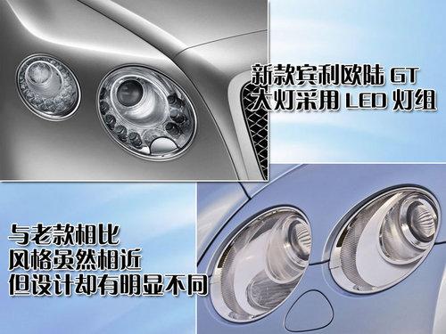 而且2012款賓利歐陸GT采用一大一小前大燈組合方式,并且采用了LED燈組設計,與老款相比雖然風格相近,但設計方式卻有明顯不同。另外,2012款賓利歐陸GT的前進氣格柵與保險杠處格柵都采用加深顏色設計,比老款車型更加大氣。2012款賓利歐陸GT采用了全新的五幅式輪轂造型,比老款的九幅式造型更加精練。