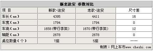 上海大眾即將批量生產(chǎn)的小改款途安在車身尺寸上與國外已經(jīng)上市銷售的車型基本一致,與現(xiàn)款車型相比幾乎沒有變化。小改款途安仍舊來自大眾的PQ35平臺,與老款車型相比在長度方面增加了1.6厘米,寬度、軸距不變,高度僅增加了12毫米。以前2.0L車型沒有第三排座椅,為標(biāo)準(zhǔn)5座。小改款的途安將第三排座椅標(biāo)配,成為了標(biāo)準(zhǔn)的7座MPV車型。