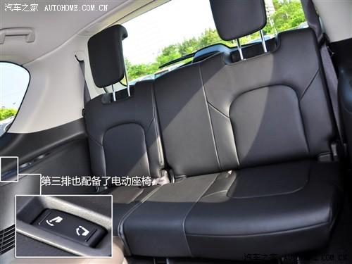 2011款英菲尼迪QX56的車身尺寸十分夸張,車長5290mm寬2030mm高1935mm,軸距達到3075mm,所以空間和舒適性絕對不是問題。即使是第二排乘客也擁有極高的乘坐感受,獨立空調、座椅通風、中央扶手箱都是后排獨享的配置。