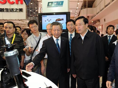 26日下午,張德江來到中國國際展覽中心,參觀了溫州冠盛、浙江萬安科技、浙江駱氏、京西重工、歐意德、盛瑞傳動等汽車零部件企業創新產品和技術展示,察看了奇瑞、長安、海格、眾泰等企業研發的新能源汽車整車,詢問了我國新能源汽車和汽車零部件產品開發、市場推廣的情況。他指出,近年來我國汽車工業克服國際金融危機帶來的嚴重沖擊,逆勢而上,快速發展,取得了重大進展。但要清醒地認識到,雖然目前我國汽車生產和銷售總量大,但整體實力仍然不強,必須緊緊把握世界汽車工業發展趨勢,抓住當今世界汽車轉型的有利時機,加快研制并真正掌握新一代汽車技術,促進我國汽車工業實現質的飛躍。