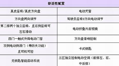 舒適配置方面,新車將配有電動天窗、真皮方向盤(多功能)/座椅、駕駛員座椅8方向電動調節、第二排獨立座椅(右側座椅可左右滑動)、電動折疊外后視鏡、四門一觸式升降電動門窗、三區獨立控制電動空調、無鑰匙啟動等。