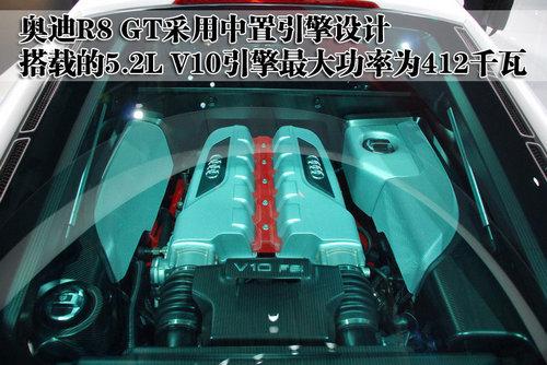 奧迪R8 GT采用了中置引擎技術,搭載的是5.2L V10汽油發動機,最大功率可以達到412千瓦,最大扭矩達到540牛米,動力方面有了一定的提升。而減輕自重的奧迪R8 GT的百公里加速僅需要3.6秒,極速也能達到320千米/小時。