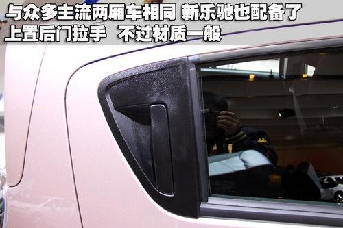 當下很多車型都開始采用后門上置拉手設計,這樣的設計不僅造型比較新穎,而且使用起來也十分便利。不過新樂馳的的把手造型和用料都比較一般,如果設計成半圓形或其它造型可能會更符合外觀整體的定位。