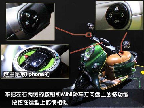 MINI Scooter E概念車將i phone手機(jī)與電動車融合,通過位于車輛頂端的專用接口。車主的i phone手機(jī)可以放置于其中,與車輛的音響和信息與了系統(tǒng)實(shí)現(xiàn)最大化的兼容。此外,還有一項(xiàng)有趣的功能,可以通過谷歌地圖來顯示其它騎車者的位置,甚至可以發(fā)出結(jié)伴而行的邀請。