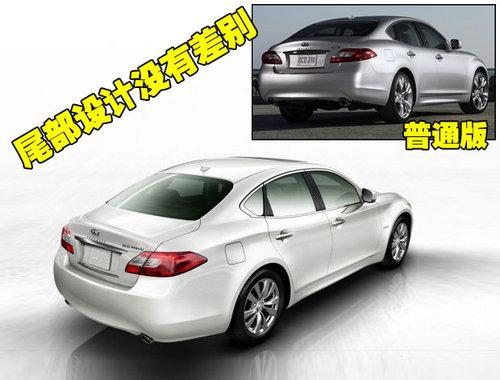 英菲尼迪新款M35混合動(dòng)力版車型的整個(gè)車身線條更加的優(yōu)美,雖定位于商務(wù)轎車,但英菲尼迪的運(yùn)動(dòng)秉性還是被傳承下來,車尾除了在行李廂蓋上增加后擾流片外,后保險(xiǎn)杠下方還有小導(dǎo)流板,拉后的C柱使車廂內(nèi)的前后排空間都很寬裕。