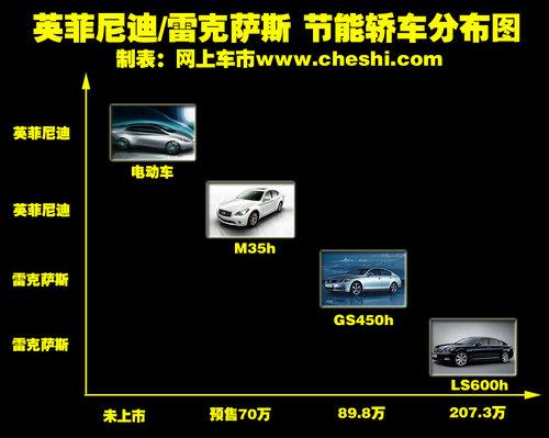 英菲尼迪與雷克薩斯雖然同屬日系豪華品牌,但雷克薩斯一直致力于油電混合動(dòng)力車型的設(shè)計(jì)和研發(fā),而且較早將混合動(dòng)力車型引入國(guó)內(nèi),旗下的RX450h、GS460h和LS600hl等車型均得到了國(guó)內(nèi)消費(fèi)者的認(rèn)可。不過雷克薩斯混合分別為SUV和D級(jí)豪華轎車,較高的售價(jià)(廠商指導(dǎo)價(jià)為94.1萬——207.3萬之間)則讓不少消費(fèi)者望而怯步。而英菲尼迪即將引入的兩款新車級(jí)別相對(duì)較低,這種合理的市場(chǎng)定位不僅降低了消費(fèi)者購車的門檻。
