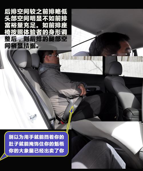 科魯茲前排空間相對還是充足的,身高180cm的旁人坐在其中,頭部尚有很大一塊的富余量。但后排空間就不那么樂觀了,頭部空間明顯沒有前排的充裕,如果前排同樣是180cm的駕駛者,調整座椅后,后排的膝部與座椅的空間不足一指。