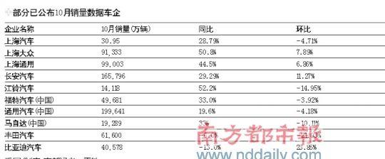 從已公布10月份產銷快報的幾家企業來看,在高基數的基礎上同比增速均在25%以上,較9月份也有所提升。但更多的尚未公布10月份產銷數據的車企均向記者表示,10月份的銷量不及9月份,“銀十”的確不如“金九”。