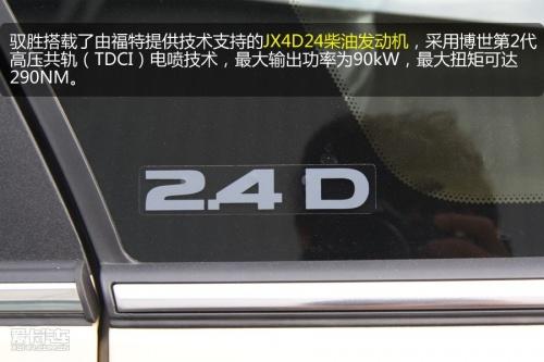 動力單元,馭勝搭載內部投產代號為JX4D24的柴油發動機,采用博世第2代高壓共軌(TDCI)電噴技術,其中,2.4L發動機的最大輸出功率為90kW,最大扭矩可達290NM。匹配5速變速箱。盡管目前還沒有確切的數據,但相信馭勝的車重不會輕,搭載柴油動力也是個不錯的選擇。