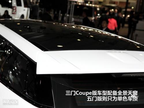 車頂采用懸浮式錐形設計,此處對整車展現的姿態起到了決定性的作用,令其風格與一些運動型跨界車型異曲同工,三門Coupe版車型配備全景天窗,五門版則只為單色車頂。