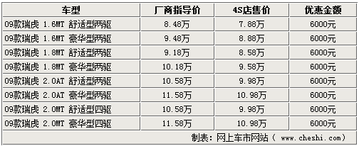 據奇瑞汽車4S店銷售人員介紹,瑞虎3目前現車齊全,除四驅車型只接受預訂,大概兩周以后可以提到現車外,2.0L自動擋車型以及1.6L和1.8L車型的現車比較齊全,目前全系車型都可以優惠6000元,歡迎消費者到店賞車試駕。