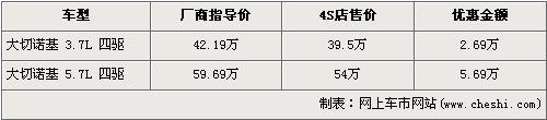 吉普大切諾基是吉普家族中極具個性的一款大尺寸車型,在推出3.7L排量車型后,消費者的選擇空間更大,同時帶給駕乘者完全不同的駕駛體驗。根據網上車市價格監測系統顯示,目前大切諾基的售價最高優惠5.69萬元,具體車型以及價格如下: