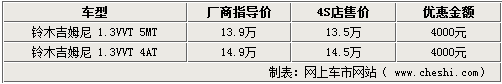 鈴木微型SUV-吉姆尼的動(dòng)力源于鈴木運(yùn)轉(zhuǎn)平穩(wěn)的M13A DOHC發(fā)動(dòng)機(jī),該發(fā)動(dòng)機(jī)以其反應(yīng)靈敏、高燃油效率而聞名于世,且頗受年輕消費(fèi)者的青睞。網(wǎng)上車市網(wǎng)站了解到,目前在北京地區(qū)購買進(jìn)口鈴木吉姆尼可以得到4000元的現(xiàn)金優(yōu)惠。具體詳情如下: