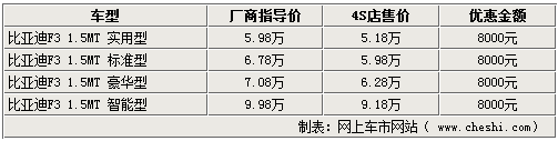 據(jù)比亞迪汽車4S店銷售人員介紹,目前比亞迪F3智能白金版只有實用型、標準型和豪華型有現(xiàn)車銷售,智能型和自動擋車型都現(xiàn)車不足,即使預訂也無法得知具體到店時間。現(xiàn)在購買比亞迪F3智能白金版可以有較大的優(yōu)惠幅度,其中實用型,豪華型以及標準型均可以優(yōu)惠8000元;而智能型也可以優(yōu)惠8000元,但需要預訂。該比亞迪4S店銷售人員表示,如果到店詳談,還可以有更多的優(yōu)惠幅度。