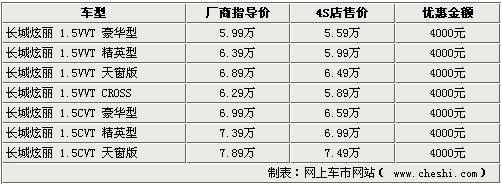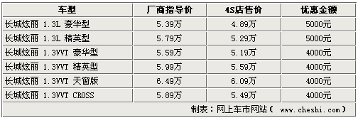 長城炫麗官方降價4000 4S店最高降5000