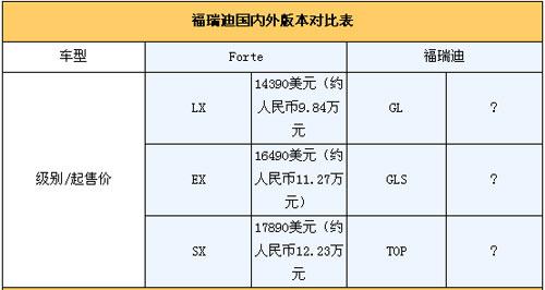 總結:從上面的對比我們發現,Forte國內外兩種版本之間的差異還是很大的,其中動力單元差別最顯著,這主要是由國情和消費能力所決定的。目前國內市場上小排量車型大行其道,尤其是1.6L車型更是炙手可熱,福瑞迪今后的重點也將會落在1.6L車型上,至于2.0L車型更多的將擔負起拉升品牌形象的重任。具體價格車型配置等信息,我們將在上市第一時間為你詳細報道,敬請大家關注!