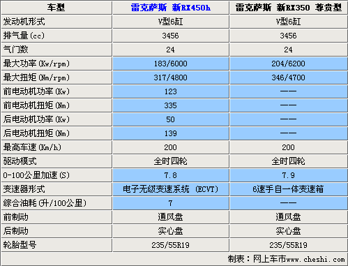 豐田汽車旗下的高端品牌——雷克薩斯在成功的向國內引入全新SUV車型RX350后,又于4月20日正式引入了全新RX的混合動力車型RX450h,售價95.4萬元。為了能讓大家更好的了解這款車型,下面我們將吧全新RX350和RX450h放在一起,來看看這兩款車型在各個方面的特點與差別,希望能對您購車有所幫助。