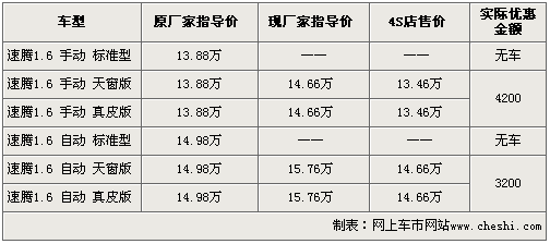 速騰作為一汽大眾新一代“A級”車生產(chǎn)平臺的產(chǎn)物,上市當初憑借全系車型標配ESP電子穩(wěn)定程序而成為統(tǒng)計標桿。隨著國家對1.6及以下排量車型減免一半購置稅政策的出臺,速騰1.6車型更受到消費者的追捧。據(jù)網(wǎng)上車市價格監(jiān)測系統(tǒng)顯示,速騰1.6排量全系車型廠家指導價格上調,優(yōu)惠幅度降低。相關車型及價格如下表所示: