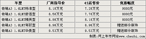 奇瑞A3自動擋暫時無車 手動擋優惠近萬元