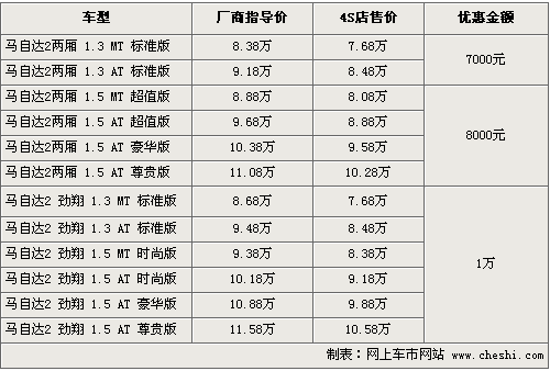馬自達2是長安馬自達繼3系列之后又一定位更加年輕化的城市小車,Mazda2沿襲馬自達經典的“Zoom-Zoom”設計理念,并同時結合了優異的安全性、舒適性及燃油經濟性表現。根據網上車市價格監測系統顯示,目前全系最高可優惠現金1萬元左右,具體行情如下: