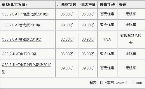 沃爾沃旗下的豪華轎跑車全新改款C30已于3月18日正式在中國(guó)上市,憑借著時(shí)尚的外觀設(shè)計(jì)和沃爾沃的品牌影響力,自上市以來(lái)受到了廣泛關(guān)注。近日網(wǎng)上車市記者也從沃爾沃北京經(jīng)銷商處了解到,目前C30最高優(yōu)惠1.9萬(wàn)元,詳情參考下表: