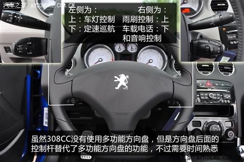 308CC定位一款運動型轎車,使用了和GTI手感非常相似的方向盤,粗實的的手感十分適合男性駕駛員,不過沒有多功能快捷鍵設(shè)計讓方向盤上面的小獅子略顯孤單,雖然沒有多功能方向盤,但是標致還是將方向盤后面增加了多功能控制桿,說實話時間長了感覺還是控制桿好用,只是上手難度比較大。
