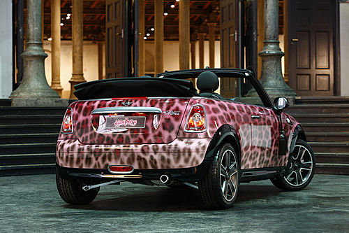 寶馬Mini與歐洲最大的慈善活動之一“生命之球"(Life Ball)慈善機構晚會再次合作,推出了一款特別定制的Mini Cooper敞篷版,這款特別版車型是按照Kate Perry的服裝款式所設計的,如今這款特別版車型在奧地利首都維也納亮相了,粉色和黑色的豹紋外觀吸引了不少觀賞者的駐足。