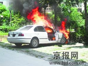 昨天中午12時許,烈日炎炎下,通州區西露園小區里的一輛寶馬轎車突然躥出了火苗,經過通州區新華街消防中隊10分鐘的撲救,大火終于被撲滅。