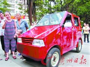 “做這玩意兒主要出于愛(ài)好。”留著淺平頭的湖北黃石人彭易然坦然而得意地告訴記者,7年來(lái)一直在東莞長(zhǎng)安霄邊從事送水、送氣的他,很想擁有一輛自己的轎車(chē),但是高昂的車(chē)價(jià)使得他望洋興嘆。于是在去年9月,僅有小學(xué)學(xué)歷的他突發(fā)奇想“自己做一輛”。