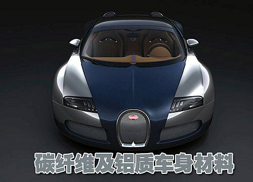 其車身外觀主要由碳纖維和鋁金屬構(gòu)成,其中碳纖維采用的藍(lán)色噴涂顏色,而其鋁金屬則是其本身的顏色,不過(guò)經(jīng)過(guò)了拋光處理。較大的輪轂采用的為午夜藍(lán)色以及金剛石刻磨的雙色調(diào)裝飾。車廂內(nèi)部采用了優(yōu)質(zhì)的Grand Sport真皮裝飾,營(yíng)造了內(nèi)部典雅和諧的格調(diào)。