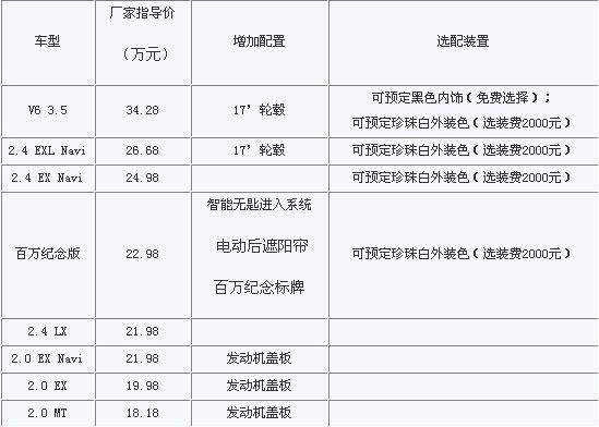 同時(shí),紀(jì)念雅閣100萬(wàn)輛下線,本次推出的2010款雅閣2.4EX車型將被命名為“雅閣百萬(wàn)紀(jì)念版”,除了享受2010款雅閣的全新的設(shè)計(jì)和配置外,還將擁有為慶祝雅閣100萬(wàn)輛下線特別設(shè)計(jì)的“百萬(wàn)紀(jì)念標(biāo)牌”,并增加Smart Entry智能進(jìn)入系統(tǒng)以及一鍵式電動(dòng)后遮陽(yáng)簾,為用戶帶來(lái)尊貴感和自豪感。據(jù)悉,由于數(shù)量有限,本次推出的“百萬(wàn)紀(jì)念版”雅閣計(jì)劃采用限量生產(chǎn)以及發(fā)售的形式推出。