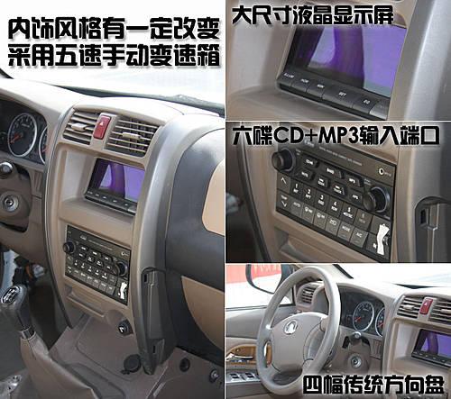 哈弗H5的內飾也比較符合長城汽車SUV產品的設計風格,中央控制區仍然是方方正正的造型。不得不說的是,哈弗H5內飾的用料依然顯得塑料感太強。但這款車的內部配置卻非常齊全,不僅配備了六碟CD和MP3輸入端口,還配備了大尺寸液晶顯示屏。哈弗H5采用的四幅式方向盤顯得比較簡單,沒有音響按鍵和定速巡航功能。
