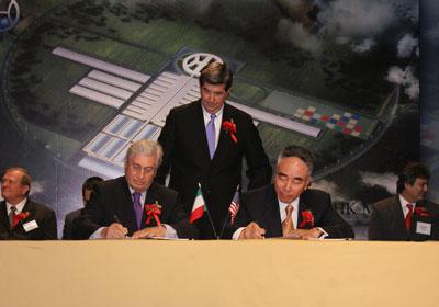 現(xiàn)場(chǎng),阿拉巴馬州州長(zhǎng)Robert Riley、正道汽車公司董事長(zhǎng)仰融、意大利喬治亞羅公司創(chuàng)始人喬治亞羅,及相關(guān)300名嘉賓參加了現(xiàn)場(chǎng)簽約儀式。并包括美國(guó)、歐洲和中國(guó)的多家媒體。